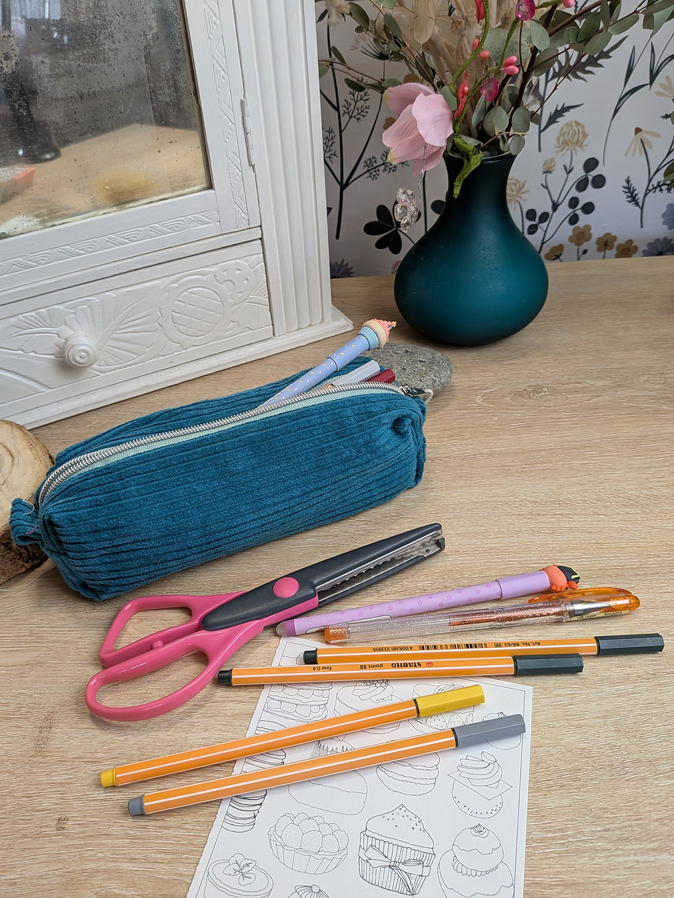 Trousse velours côtelée pétrole
